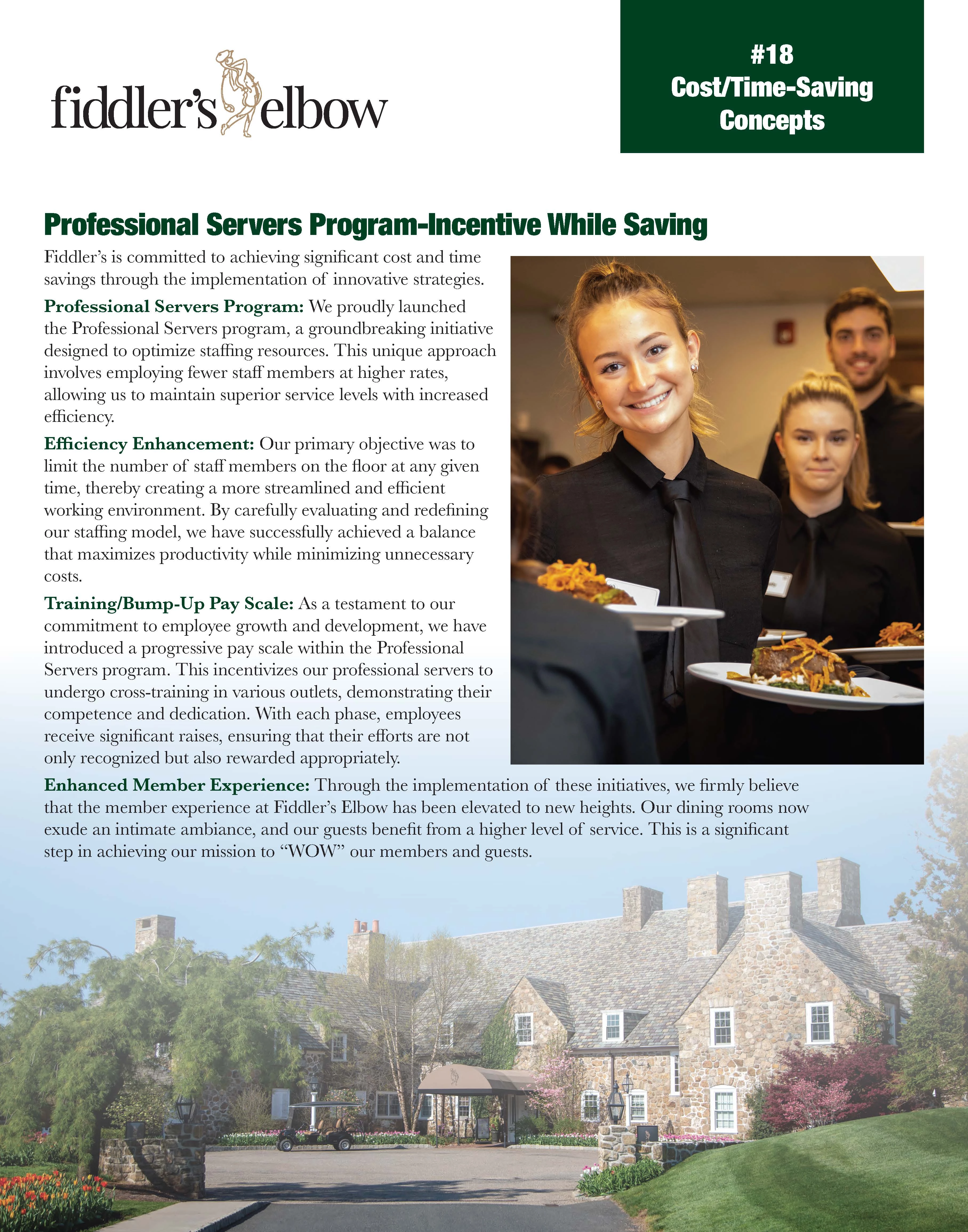 One of our staffing philosophies is limiting the amount of staff members we need on the floor at a given time. less staff members at a higher quality will be more efficient than more staff members at a lower quality. We offer our Professional Servers Program to attract and entice internal and external servers to receive significant compensation levels, in different phases, in return for a higher level of output.