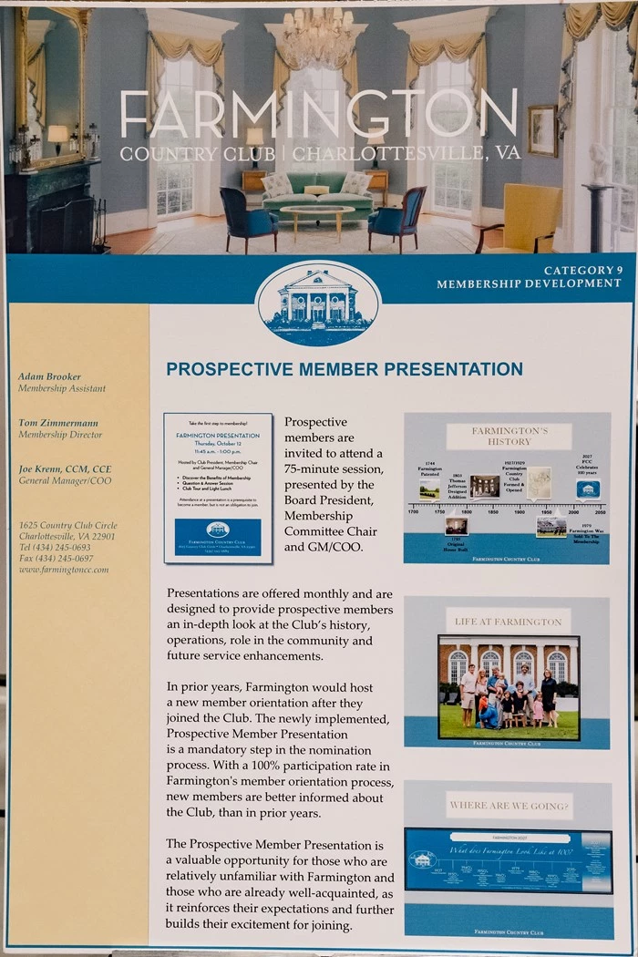 In prior years, Farmington would host a new member orientation after members joined the Club. The newly implemented Prospective Member Presentation is a mandatory step in the nomination process. With a 100% participation rate in Farmington's member orientation process,