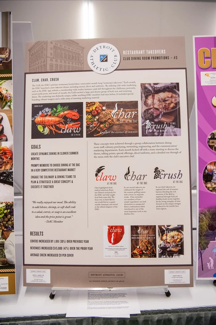 The Grill Room hosted three consecutive month-long “restaurant takeovers” to drive excitement about the Grill Room and stimulate members with new offerings. Each month we offered a new theme – including menus, décor, uniforms, and more. By utilizing club-wide marketing opportunities, such as a full membership mailer, business cards and postcards, social media, and word-of-mouth, we were able to reach many levels of membership. The takeovers were well received by members and employees who were appreciative of the opportunity to experience something “out of the box”. It gave members a reason to visit the Grill Room multiple times over the summer months, which is typically our slow period. Each new takeover gave us the opportunity to present new items to members and gauge member feedback on items that would not be typically offered in the Grill Room. These included lobster night dinners, 32oz tomahawk steaks for 2 people, chef tasting dinners at a private table, personalized wine flights and high-end wine by the glass offerings utilizing a Coravin. We ended the summer with stellar results including: incremental covers increased by 1189 over the previous year, revenues increase of $115,000 over the same period the previous year, and growth of the dinner guest average of $9.00 per cover.