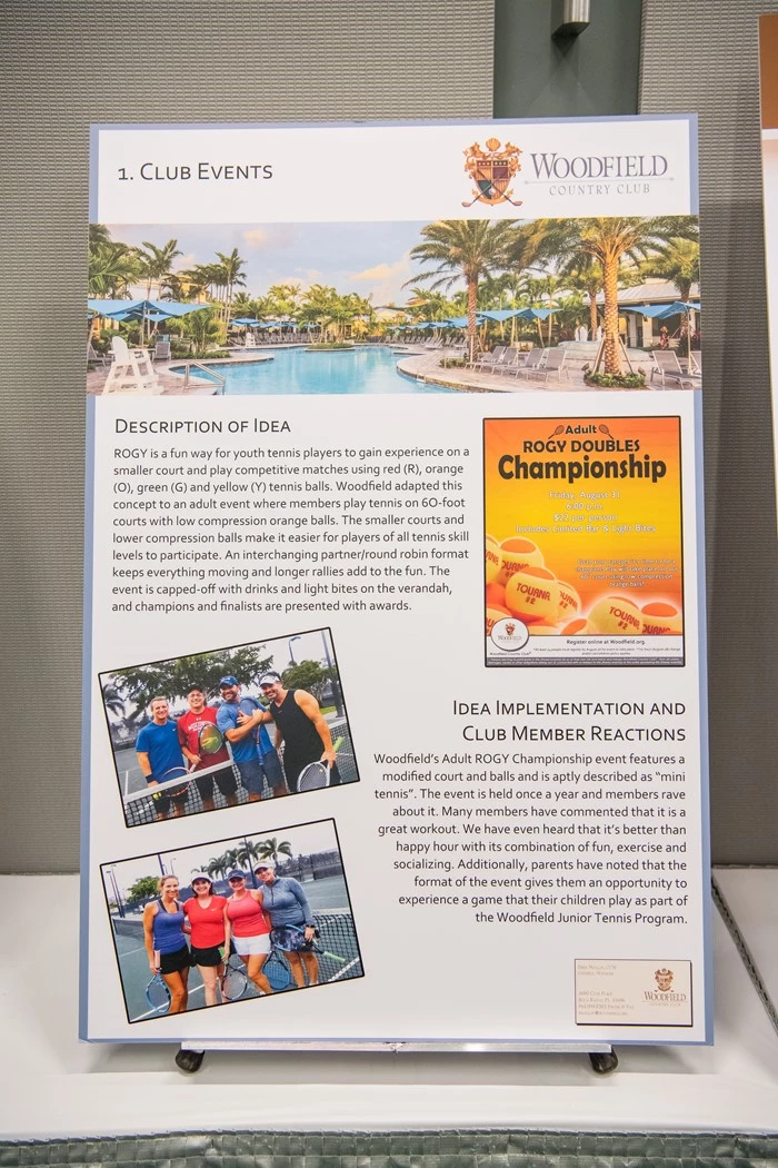 Woodfield’s Adult ROGY Championship event features a modified court and balls and is aptly described as “mini tennis”. The event is held once a year and members rave about it. Many members have commented that it is a great workout. We have even heard that it’s better than happy hour with its combination of fun, exercise and socializing. Additionally, parents have noted that the format of the event gives them an opportunity to experience a game that their children play as part of the Woodfield Junior Tennis Program.