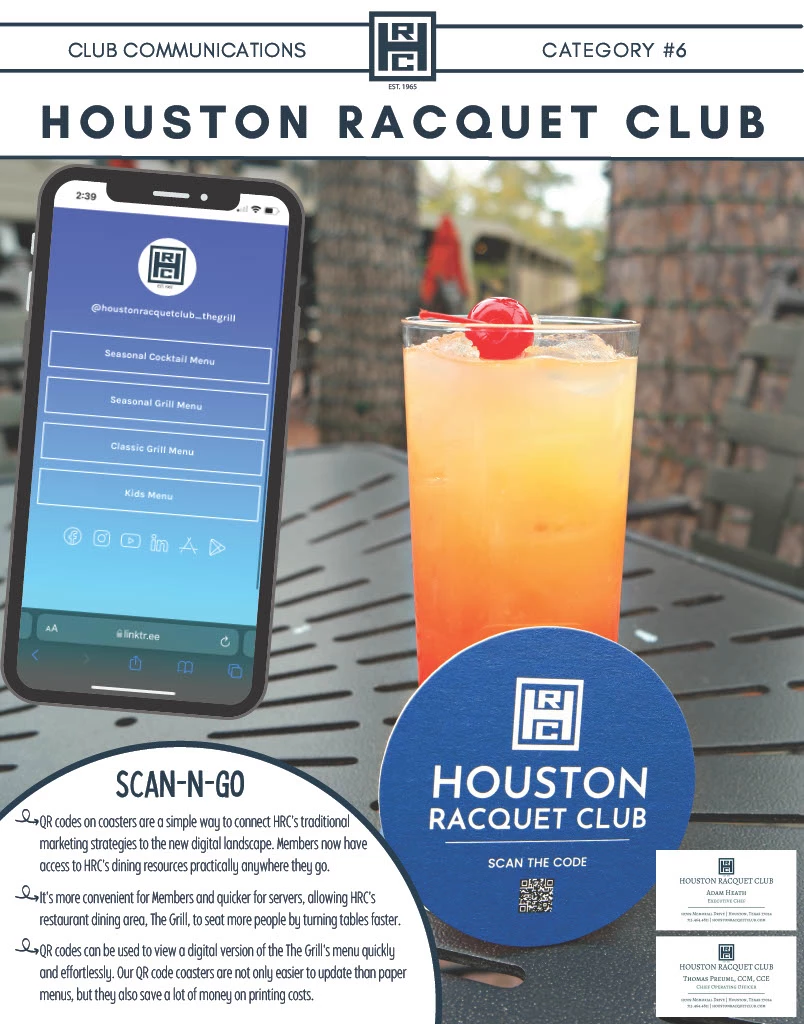 QR codes on coasters are a simple way to connect HRC's traditional marketing strategies to the new digital landscape. Members now have access to HRC's dining resources practically anywhere they go.