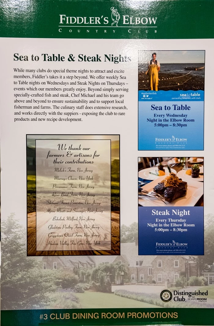 While many clubs do special theme nights to attract and excite members, Fiddler’s takes it a step beyond. We offer weekly Sea to Table nights on Wednesdays and Steak Nights on Thursdays – events which our members greatly enjoy. Beyond simply serving specially-crafted fish and steak, Chef Michael and his team go above and beyond to ensure freshness by working with local fisherman and farms to obtain the highest quality fish and meats. The culinary staff does extensive research, and ensures that each of the suppliers upholds the highest standards of quality and sustainability, so we may continue to enjoy tremendous products for years to come.
