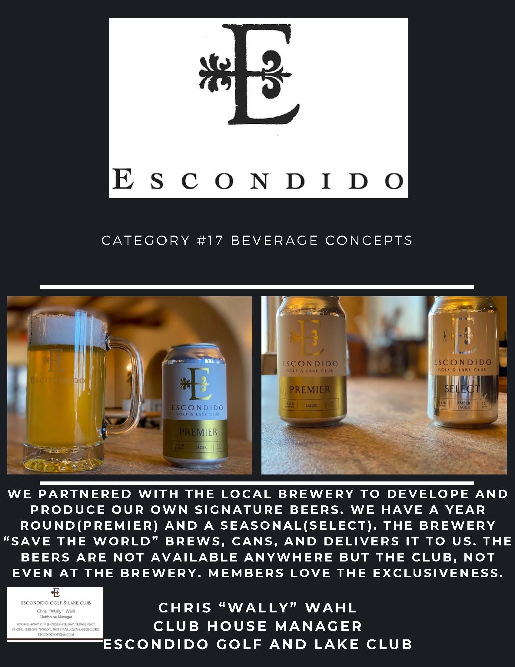 We contacted the brewery and proposed the idea. We next tasted and created four samples that we believe fit the flavor profile of the club. We brought the samples in on a Friday and did a club wide taste and member vote. The beer with the most votes won. This became our permeant year round beer "premier". The seasonal beer is on a four month rotation and will be a new beer every time, which we named our "select". We designed a can with our logo but still true to the brewery. They brew, can, and print the labels there. Because it is a malt beverage it falls under the retail wine license. We sell on average forty cases a month in just retail. The members love having their beer, with their logo on it. They will always show their guests and ask them "Does your club have it's own beer?" This has also generated a lot of traffic in the brewery with members going and taking guests to see where their beer come from.