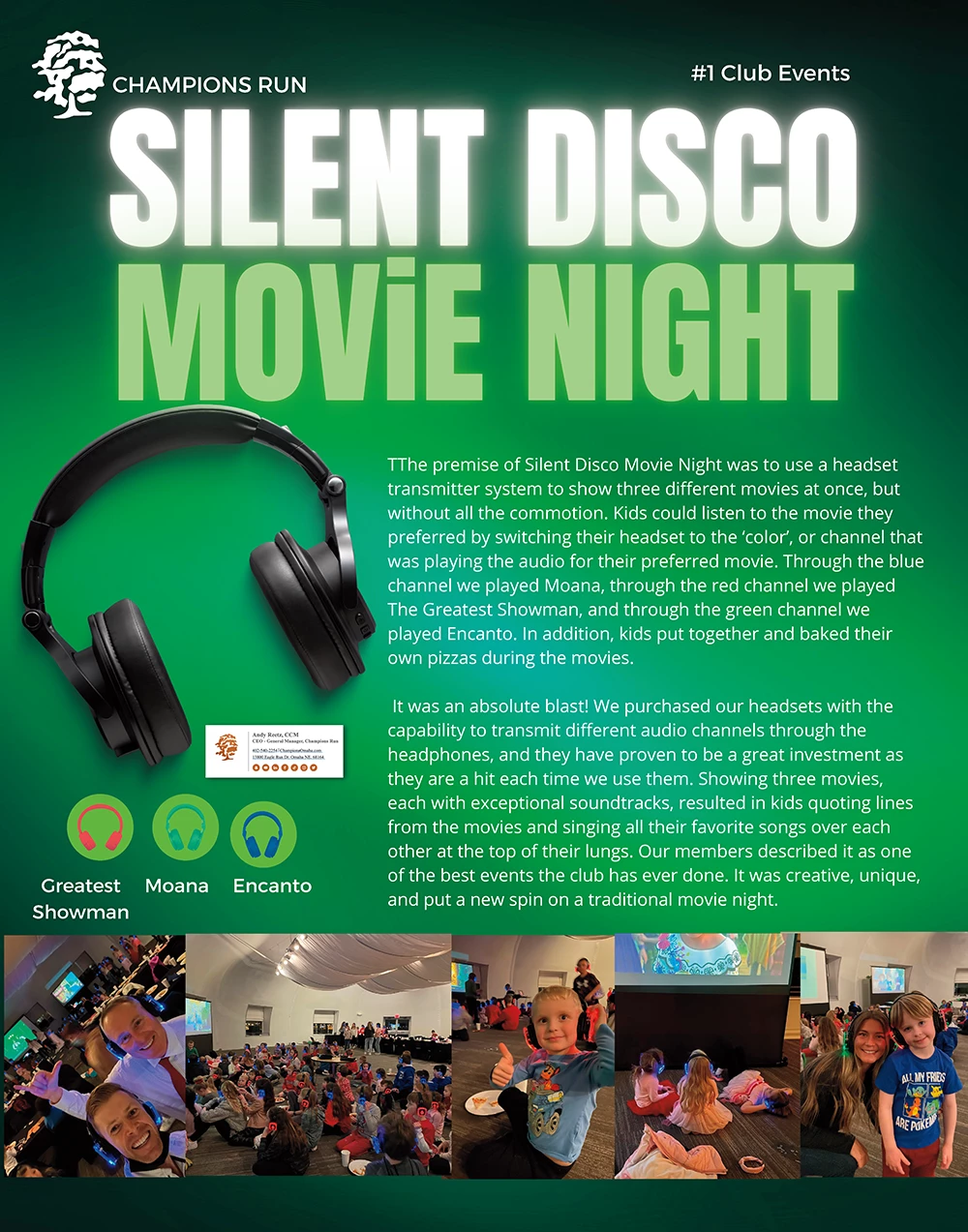It was an absolute blast! We purchased our headsets with the capability to transmit different audio channels through the headphones, and they have proven to be a great investment as they are a hit each time we use them. Showing three movies, each with exceptional soundtracks, resulted in kids quoting lines from the movies and singing all their favorite songs over each other at the top of their lungs. Our members described it as one of the best events the club has ever done. It was creative, unique, and put a new spin on a traditional movie night.