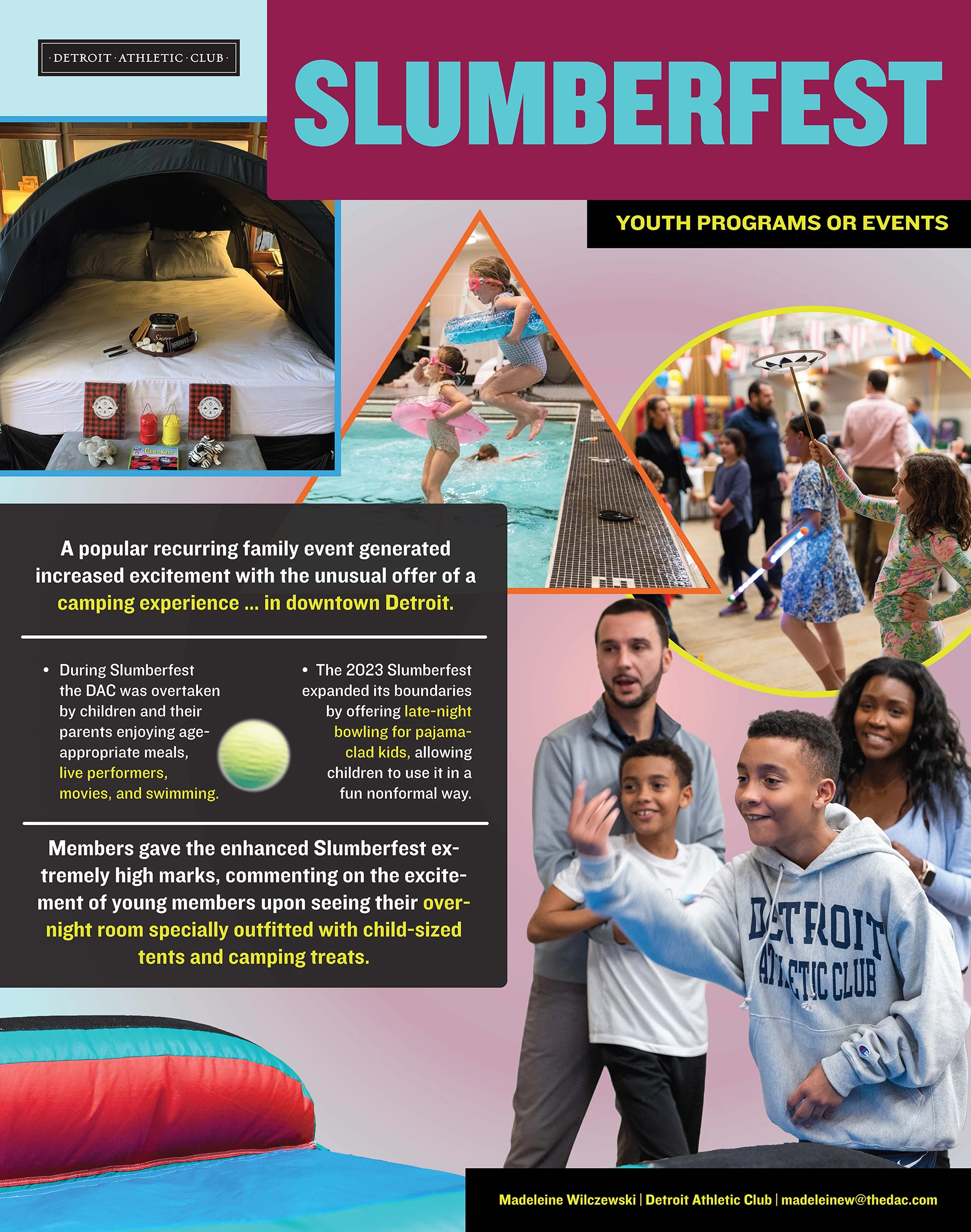 The Slumberfest experience was extended beyond its conclusion as families booked Club overnight rooms specially outfitted with kid-sized tents, creating a camping experience in downtown Detroit.