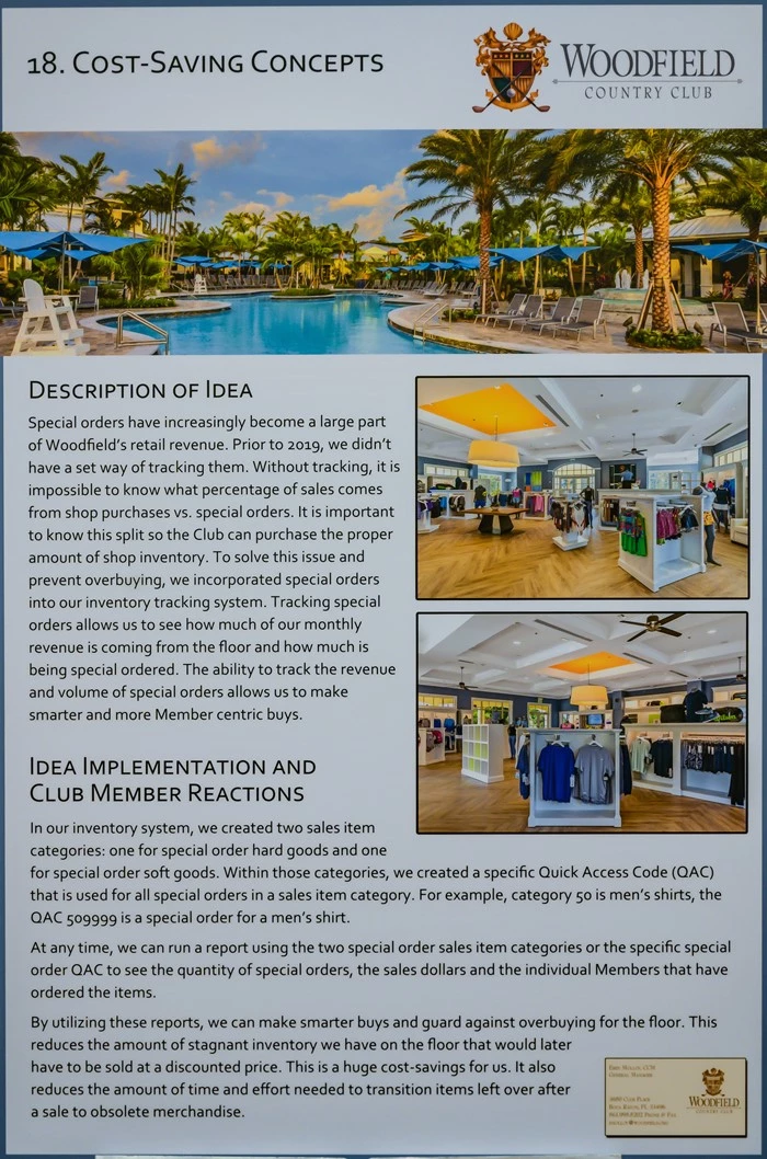 Special orders have increasingly become a large part of Woodfield’s retail revenue. Prior to 2019, we didn’t have a set way of tracking them. Without tracking, it is impossible to know what percentage of sales comes from shop purchases vs. special orders. It is important to know this split so the Club can purchase the proper amount of shop inventory. To solve this issue and prevent overbuying, we incorporated special orders into our inventory tracking system. Tracking special orders allows us to see how much of our monthly revenue is coming from the floor and how much is being special ordered. The ability to track the revenue and volume of special orders allows us to make smarter and more Member centric buys.