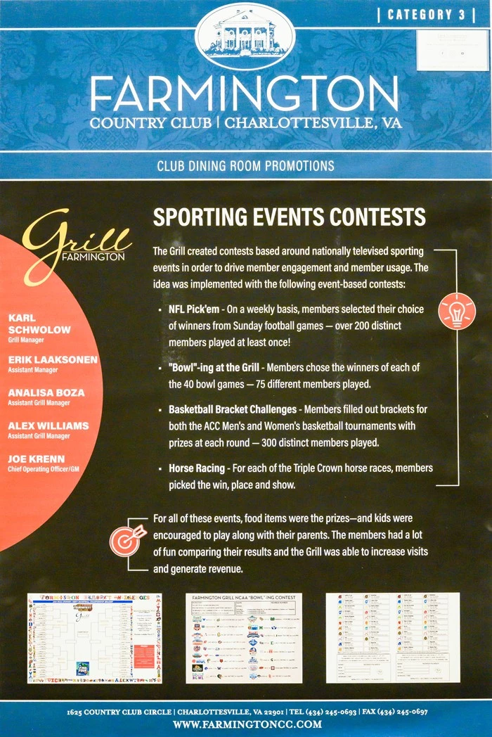 The Grill created contests based around nationally televised sporting events in order to drive member engagement and member usage. The idea was implemented with the following event-based contests: