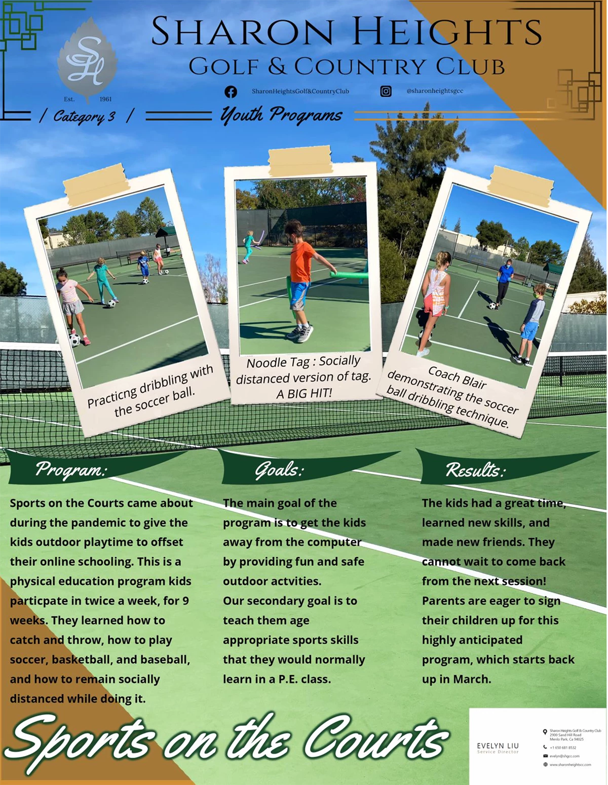 Sports on the Courts program started during the pandemic to give the kids outdoor playtime to offset their online schooling. The main goal is to get the kids away from the computer by providing a fun and safe environment for outdoor activities. Our secondary goal is to teach them age appropriate sports skills that they would normally leave in a P.E. class.