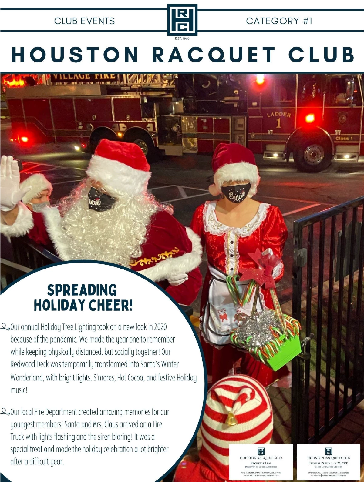 We collaborated with the local Fire Department to transport Santa and Mrs. Claus to the Club. Our Director of Maintenance decorated the Club with beautiful Holiday Lights. We served S’mores, Hot Cocoa, and had festive Holiday music! Members were thrilled!