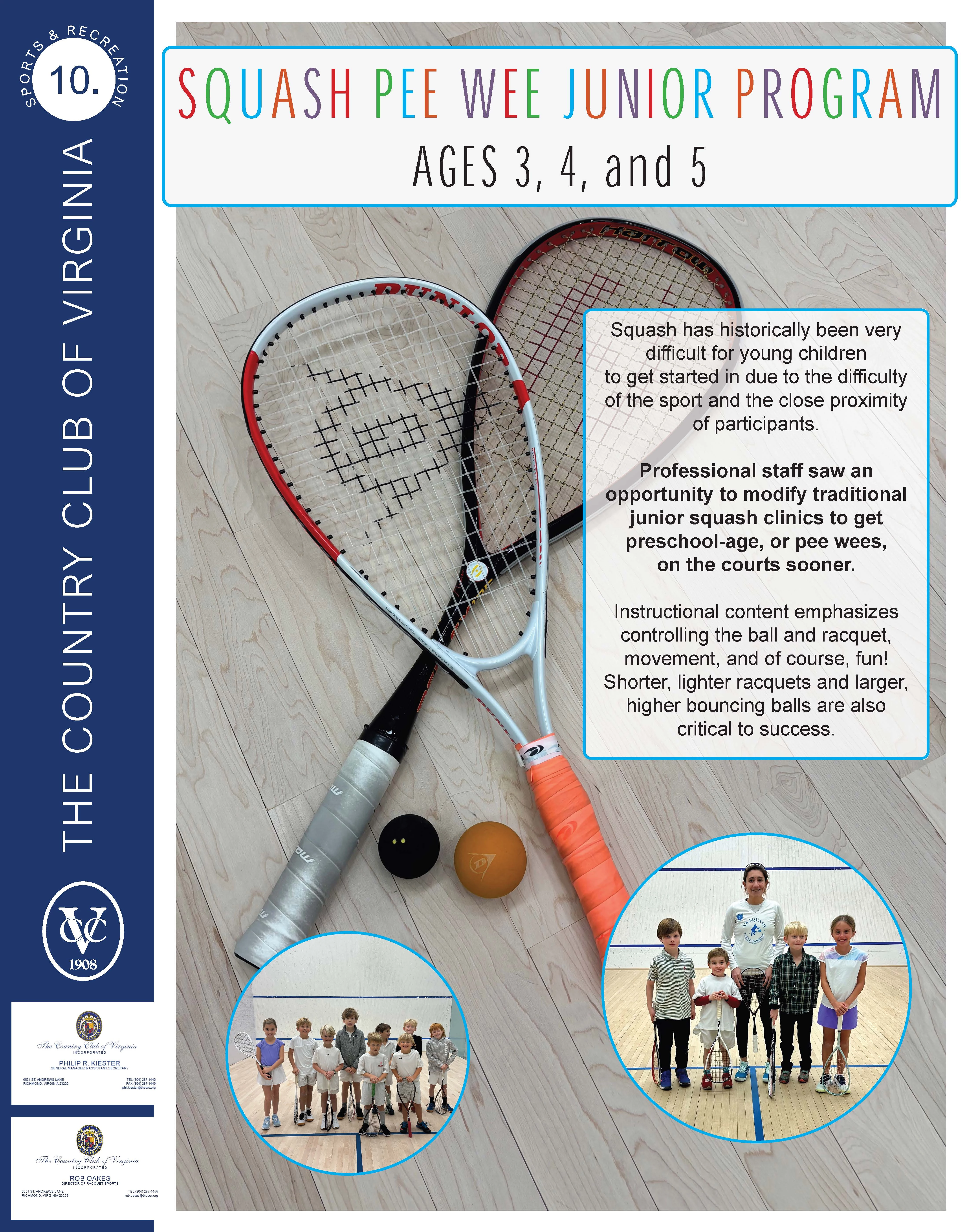 Pee Wees, or preschool age, classes were added to the weekly squash program calendar. Professional staff used age-specific racquets and balls, as well as other visually engaging training aids on court. Parents have enjoyed the opportunity to get their children started in the sport at a younger age, especially in situations where an older sibling is already participating in squash. Juniors have enjoyed the group format and the engagement with the coaches.
