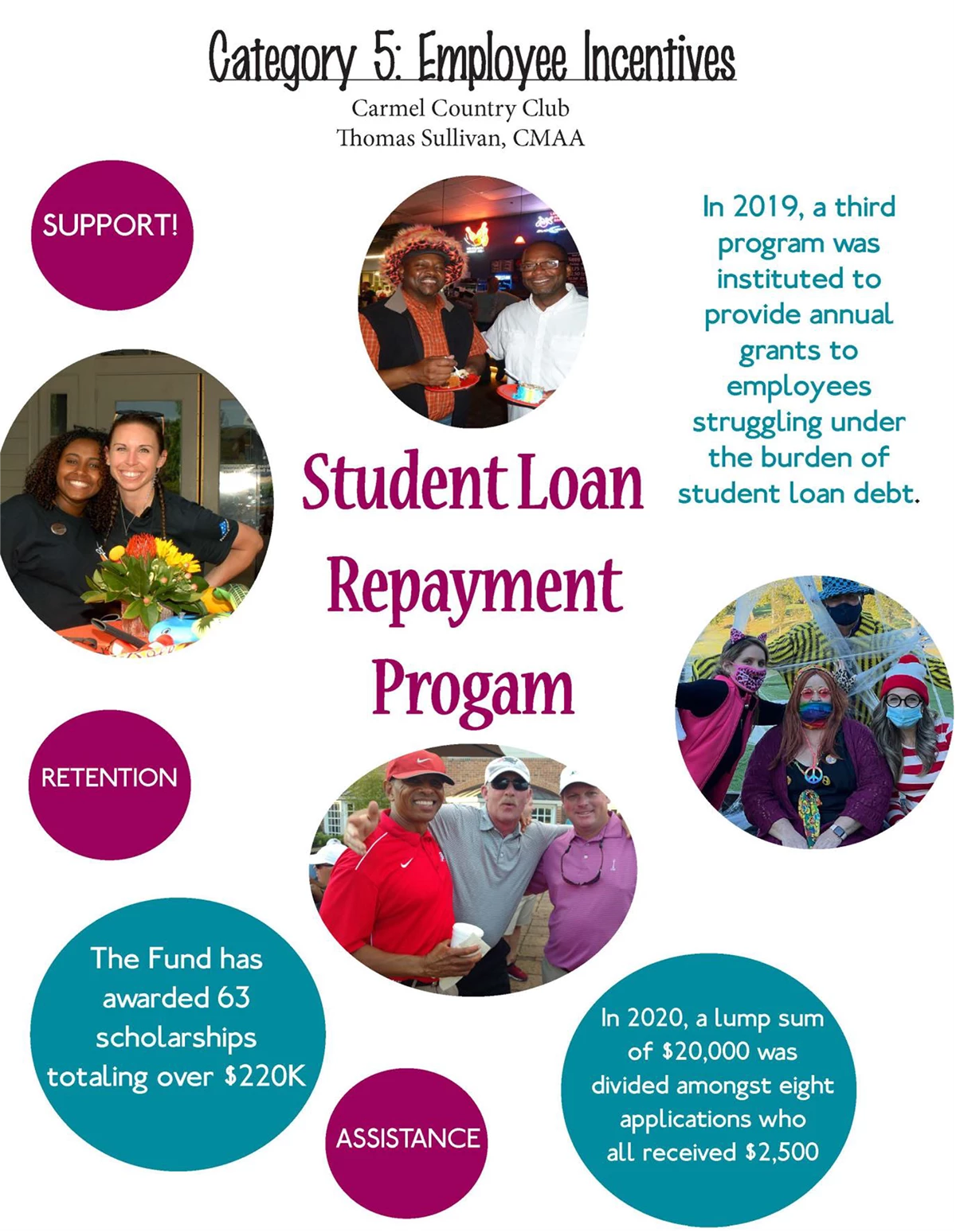 In 2019, a third program was instituted to provide annual grants to employees struggling under the burden of student loan debt. The program benefits are three-fold. First, the Fund is able to award a new group of employees who, in many cases, have finished their degree and are pursuing a career in the industry. Secondly, the Club itself can attract and retain talented workers. Finally, the recipients can pay a lump sum toward their loan, decreasing their principal, or stagger distributions and decrease monthly payments.