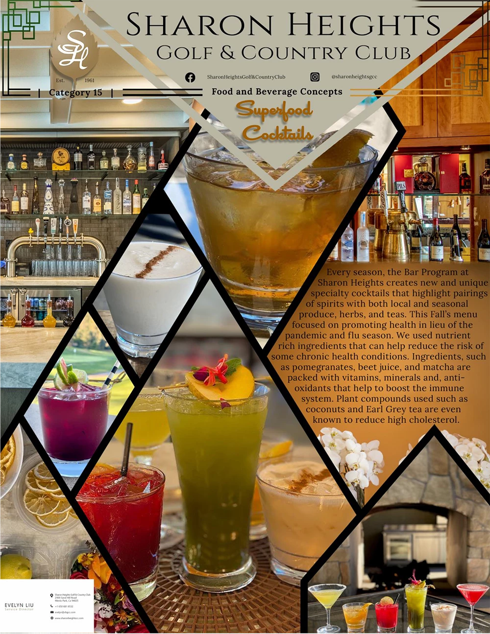 The superfood themed cocktails focused on promoting health in lieu of the pandemic and flu season. We used nutrient rich ingredients that can help reduce the risk of some chronic health conditions.