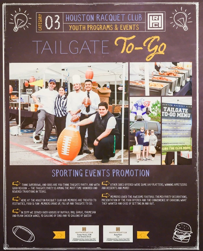 Who doesn't like a party? The Tailgate party is the among the most time-honored and revered Texas traditions. The experience of the event is what the members and staff will remember. Members are treated to festivities, food and friendship. We have hosted this a couple of years now and Chef and the culinary team know how to run this operation smoothly.