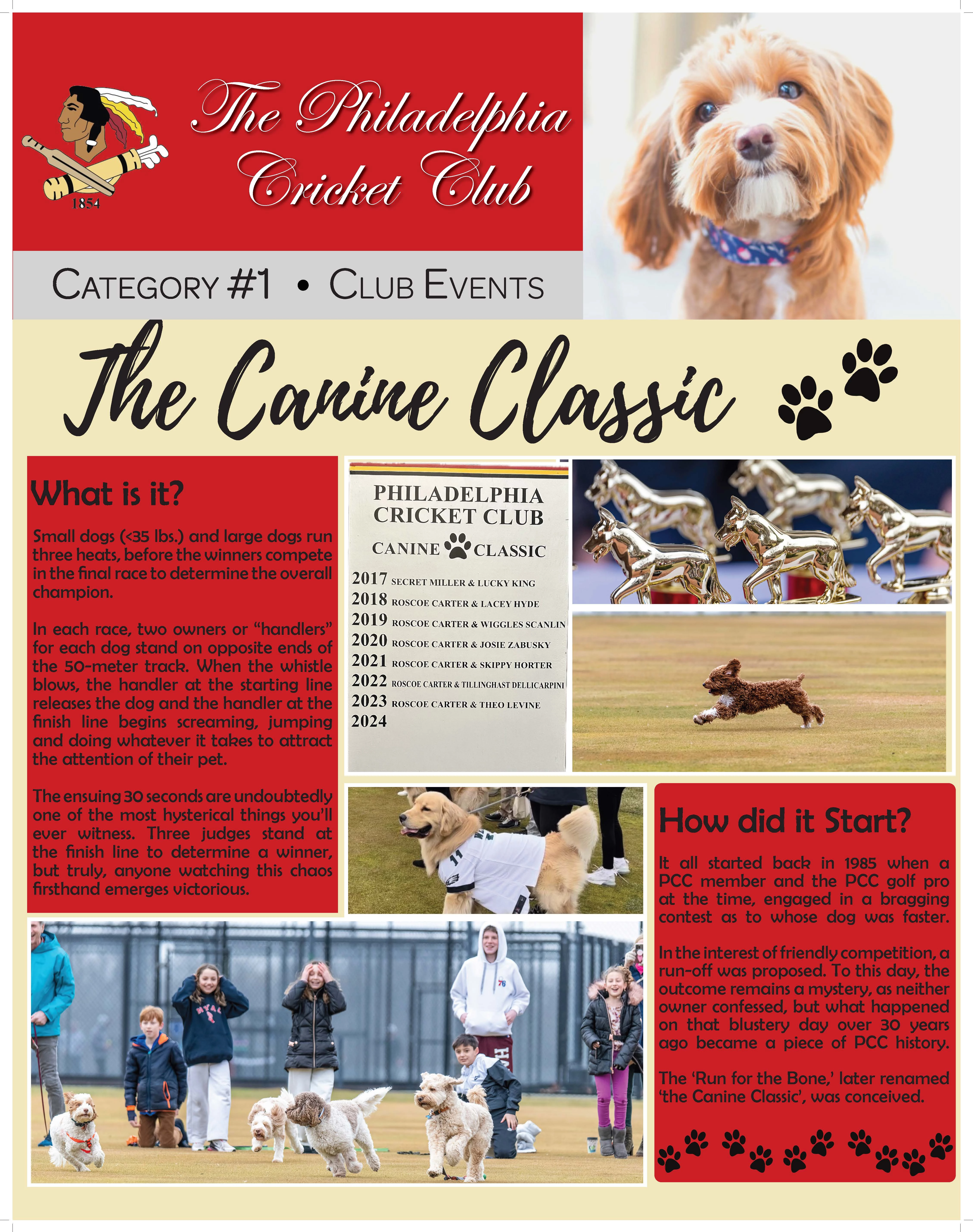 The Canine Classic is a Club tradition. Dating back to 1985, the canine classic started as a bet between a member and the golf pro on who's dog was the fastest. The torch was passed down from generation to generation until finally back in 2014 it officially became a club sanctioned event. Since PCC has taken the reigns we have implemented a few changes including a photo finish, drone video, family photos and most importantly a plaque on the wall for all members to enjoy.