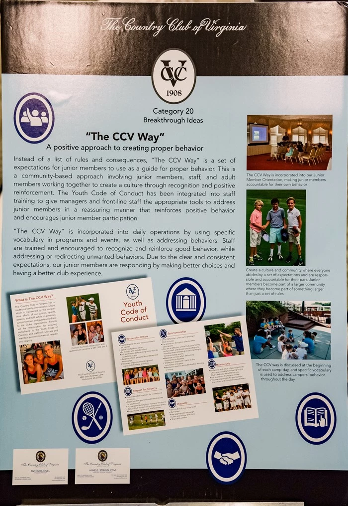 “The CCV Way” is incorporated into daily operations by using specific vocabulary in programs and events, as well as addressing behaviors. Staff are trained and encouraged to recognize and reinforce good behavior, while addressing or redirecting unwanted behaviors. Due to the clear and consistent expectations, our junior members are responding by making better choices and having a better club experience.