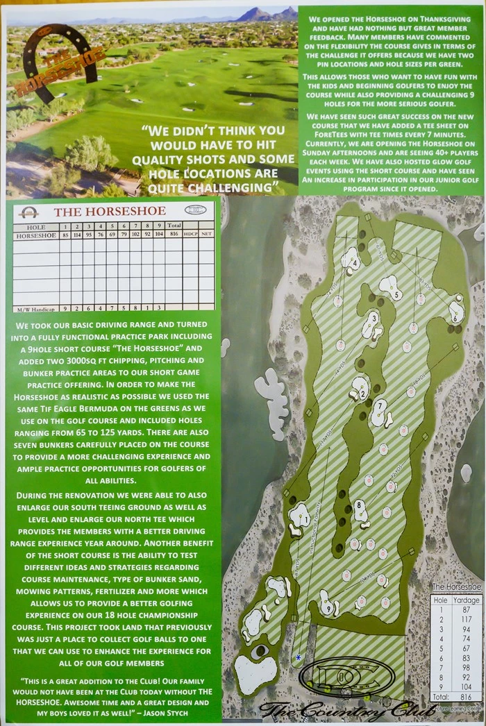 We opened the Horseshoe on Thanksgiving and have had nothing but great member feedback. Many members have commented on the flexibility the course gives in terms of the challenge it offers because we have two pin locations and hole sizes per green. This allows those who want to have fun with the kids and beginning golfers to enjoy the course while also providing a challenging 9 holes for the more serious golfer.