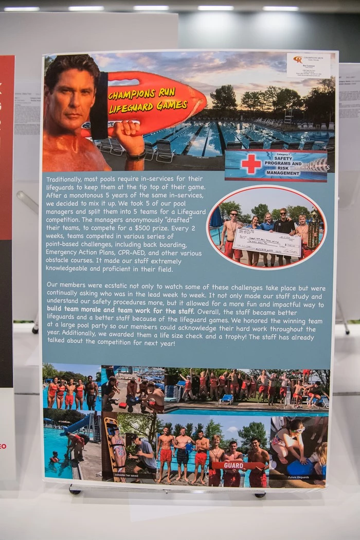 Our members were ecstatic not only to watch some of these challenges take place, but were continually asking who was in the lead week to week. It not only made our staff study and understand our safety procedures more, but it allowed for a more fun and impactful way to build team morale and team work for the staff. Overall, the staff became better lifeguards and a better staff because of the lifeguard games. We honored the winning team at a large pool party so our members could acknowledge their hard work throughout the year. Additionally, we awarded them a life size check and a trophy! The staff has already talked about the competition for next year!
