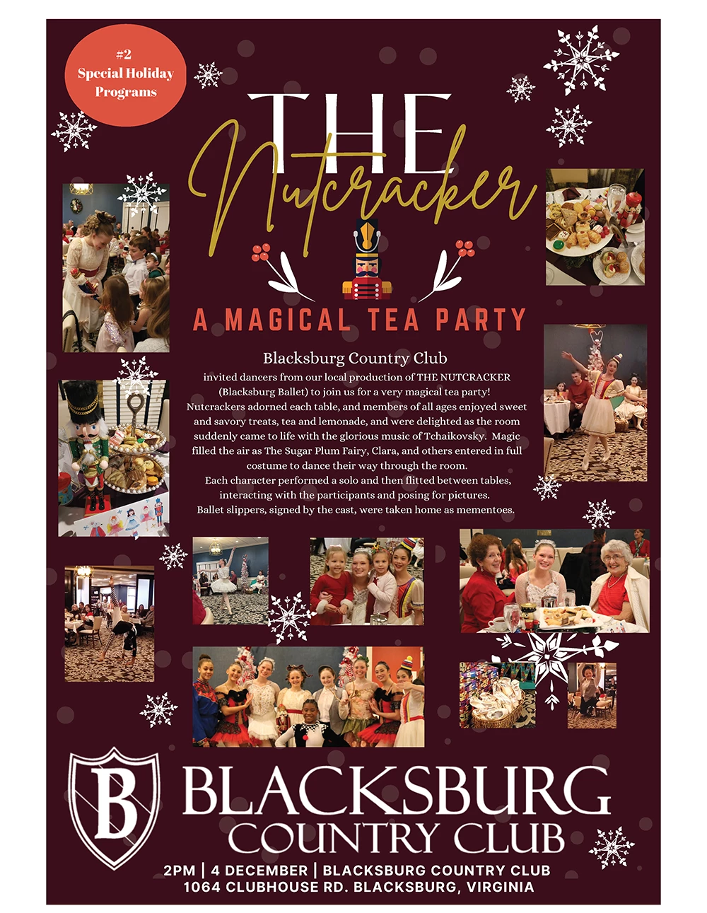 Nutcrackers adorned each table, and members of all ages enjoyed treats, tea and lemonade, and were delighted as the room suddenly came to life with the glorious music of Tchaikovsky. Magic filled the air as The Sugar Plum Fairy, Clara, and others entered in full costume to dance their way through the room.