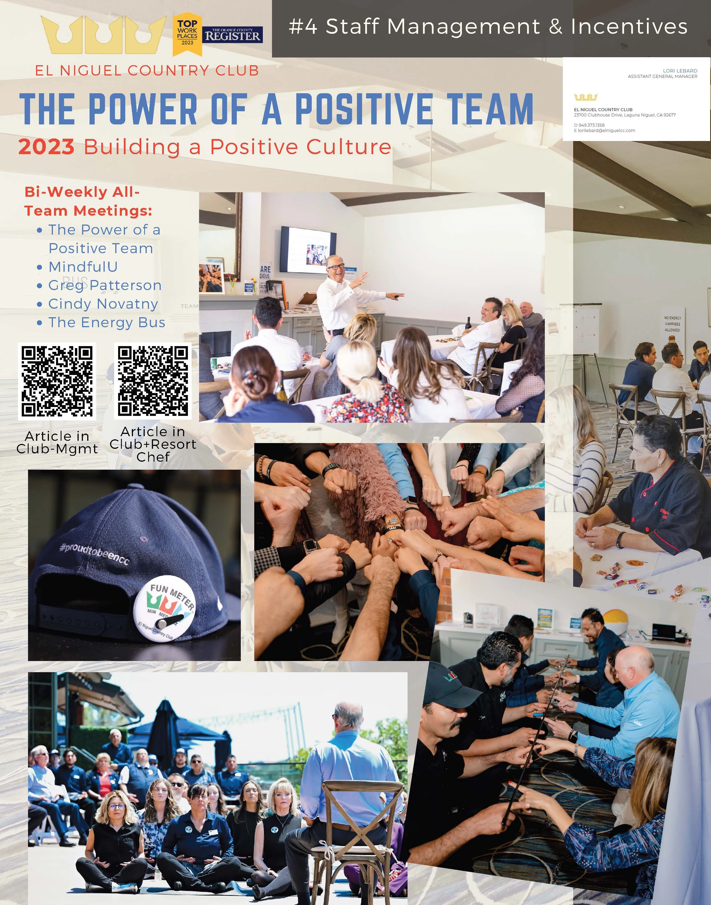 The Power of A Positive Team has led to significant enhancements in our club's operations and overall environment, primarily by creating a positive and unified team culture. Understanding that happier employees lead to happier members, we focused on the following key aspects:
