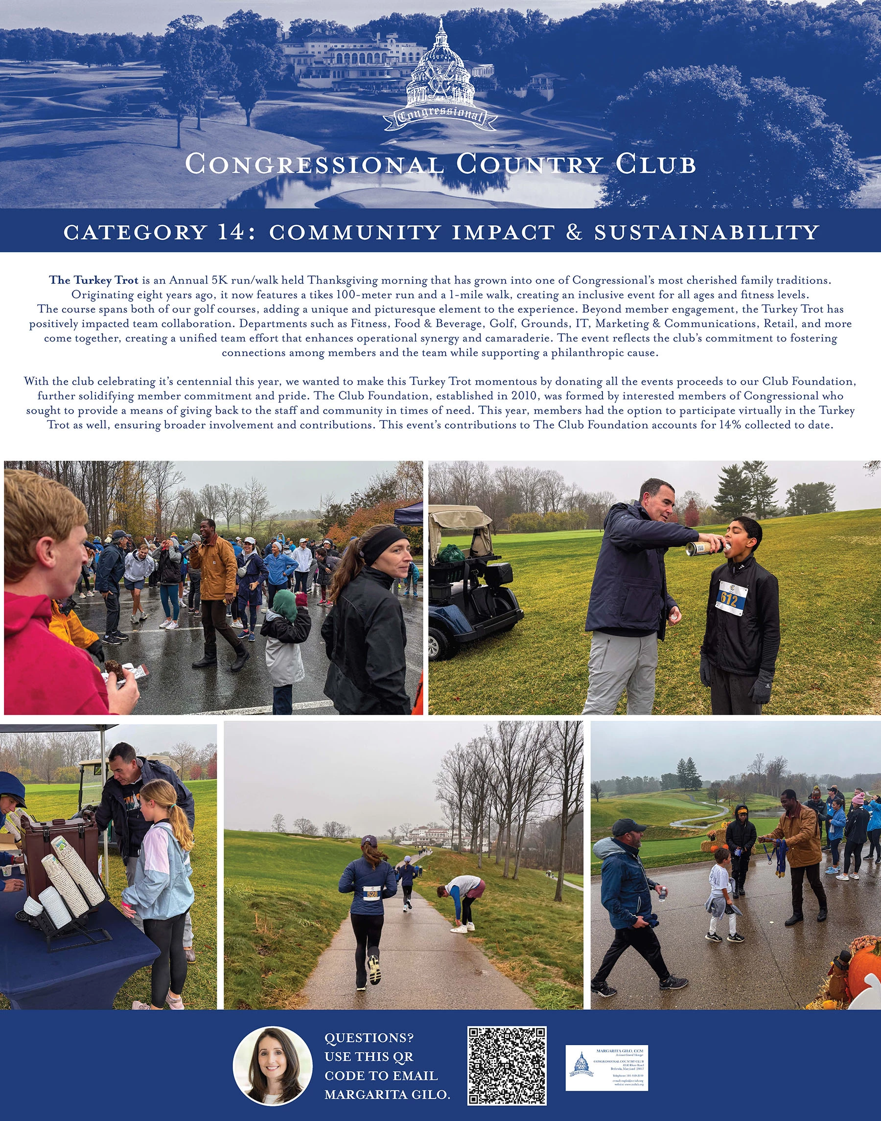Beyond member engagement, the Turkey Trot has positively impacted staff collaboration. Departments such as Fitness, Banquets, Golf, Grounds, IT, Retail, and more come together, creating a unified team effort that enhances operational synergy and camaraderie. The event reflects the Club’s commitment to fostering connections among members and staff while supporting a philanthropic cause.