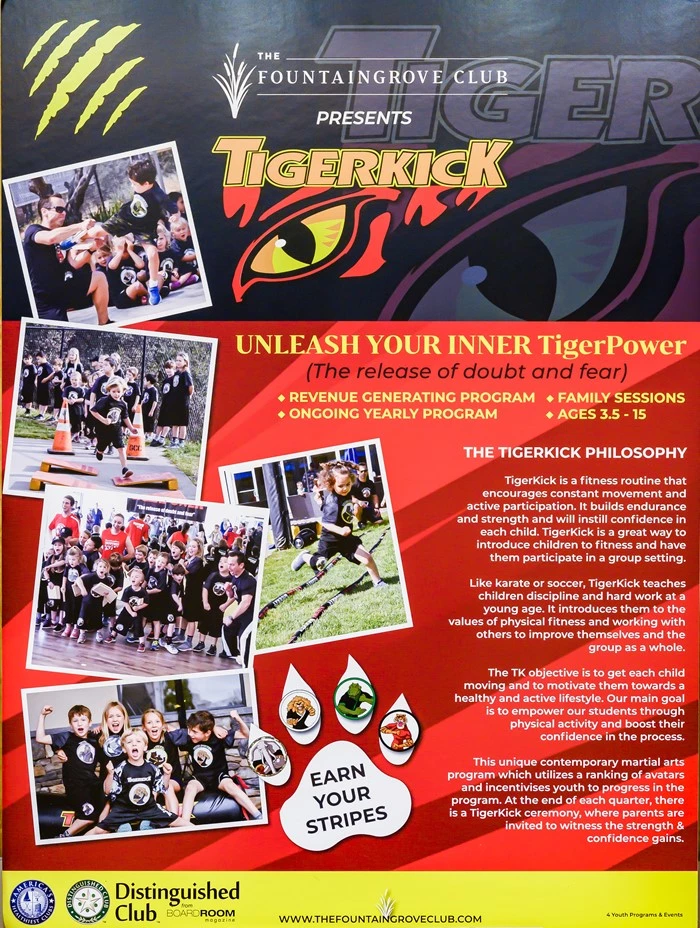 This unique contemporary martial arts program which utilizes a ranking of avatars and incentivises youth to progress in the program. At the end of each quarter, there is a TigerKick ceremony, where parents are invited to witness the strength & confidence gains.