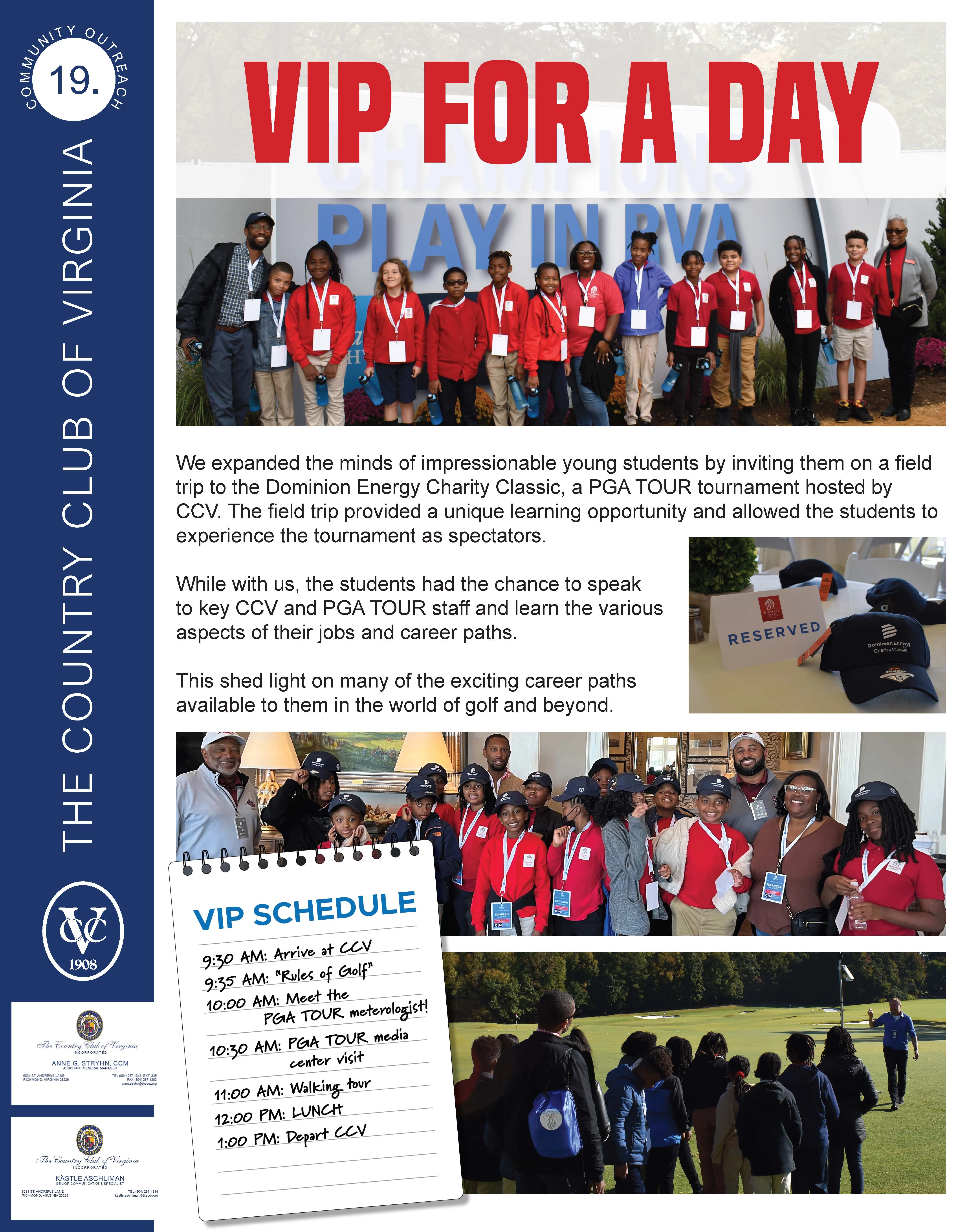 After collaborating with SAS on their Back-to-School Picnic in the fall, the Club invited the 5th grade class on a field trip to the Dominion Energy Charity Classic – a professional golf tournament on the PGA TOUR Champions played at The Country Club of Virginia.
