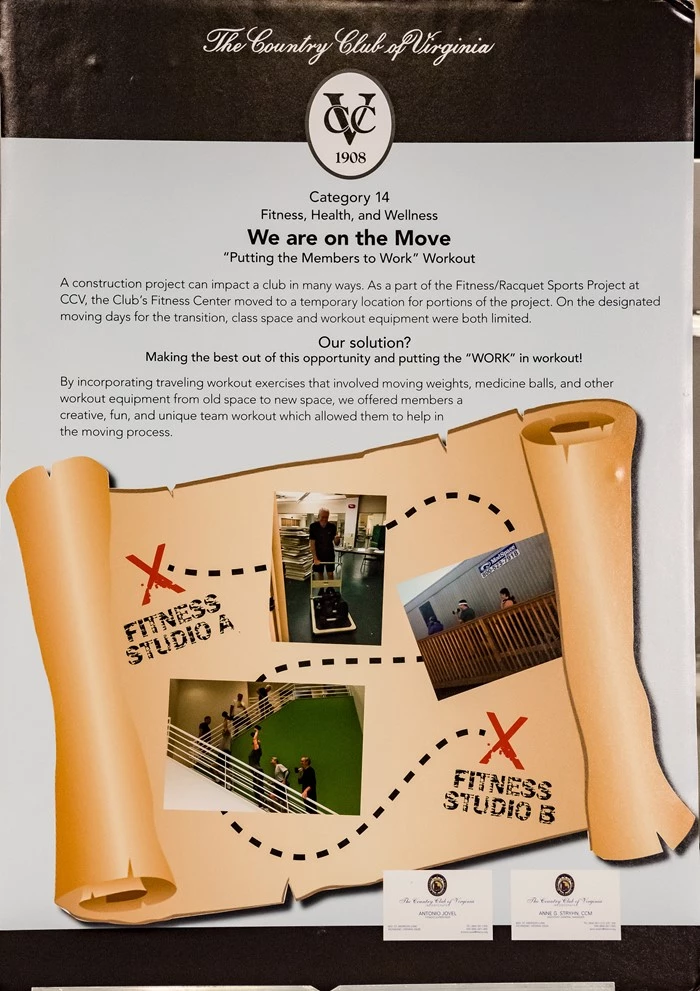 Exercise equipment like old heavy bags, medicine balls, and weights were moved from one studio to another through teamwork in a group exercise class workout. The equipment needed to be moved because of a studio renovation project so we put the members to work! The group exercise class participants got a workout and the club saved some money for a moving service which otherwise would have been outsourced to a contractor to move equipment.