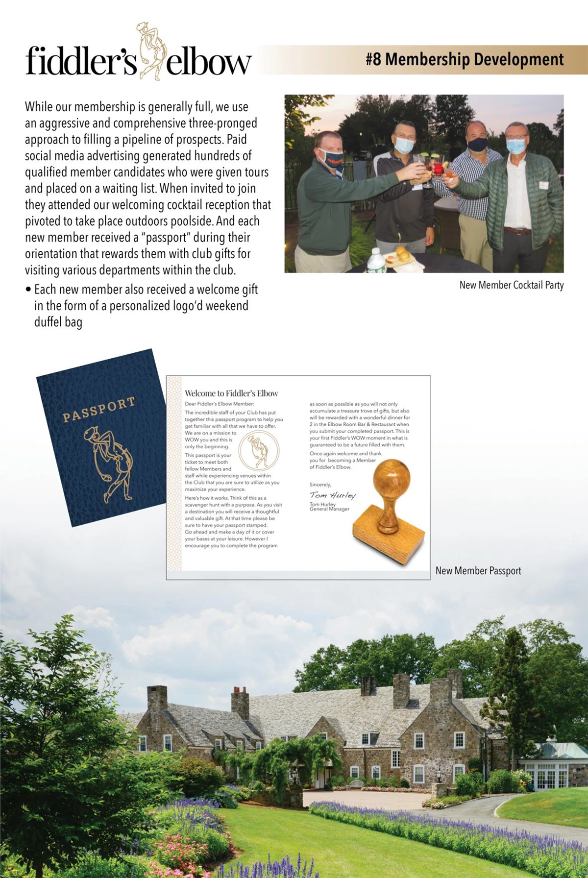 The first event we hold for our new Members is a New Member social. They have the opportunity to meet the Staff that is at Fiddlers Elbow and other New Members. At the Social they are gifted with a weekend Duffle Bag and a Passport. Our Passport pushes them to see what we offer at Fiddlers. As they make their way through the Club, they will collect a personalized Fiddlers Stamp. Along their journey, they will stop at each outlet and the outlet Manager will issue them a stamp. Once all stamps are collected, a prize will be issued to that Member.
