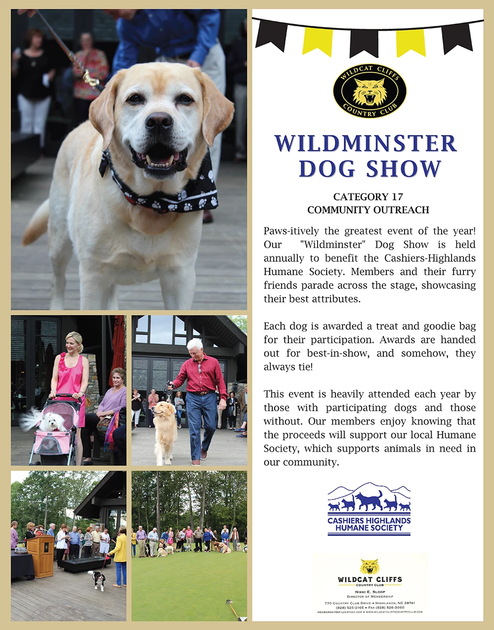 Members enjoy gathering to show off their furry loved ones. The event is paired with dinner and is heavily attended by those with participating dogs and those without. All of the funds raised go to the local Humane Society.