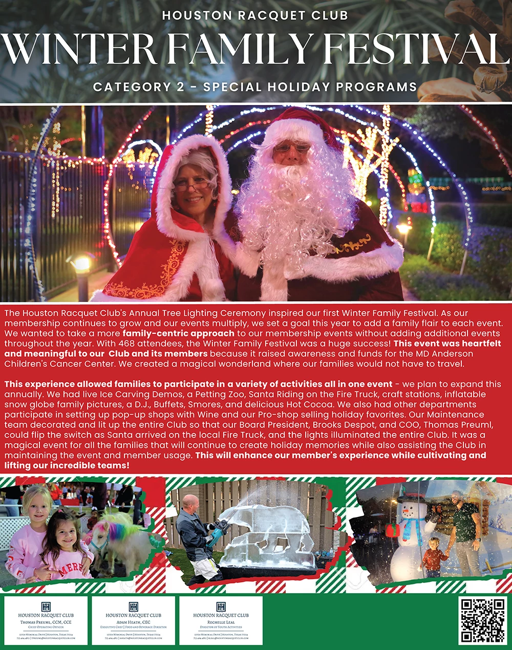 The Youth Department teamed up with multiple departments to create this breathtaking Winter Wonderland. Our teams of F&B, Pro-shop, Aquatics, Maintenance, Security, and our Club’s Board of Directors all came together to put this event together. The members were in awe of this fabulous event and could not stop talking about the transformation of the Holiday season and cheer at the Club.