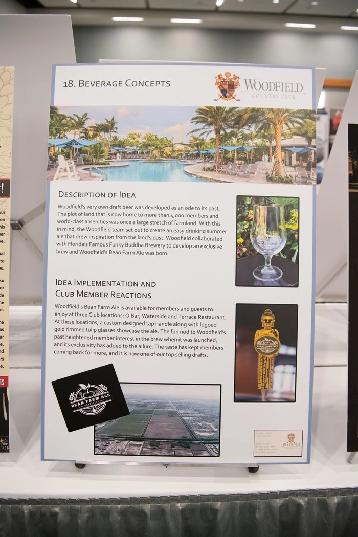 Woodfield’s Bean Farm Ale is available for members and guests to enjoy at three Club locations: O Bar, Waterside and Terrace Restaurant. At these locations, a custom designed tap handle along with logoed gold rimmed tulip glasses showcase the ale. The fun nod to Woodfield’s past heightened member interest in the brew when it was launched, and its exclusivity has added to the allure. The taste has kept members coming back for more, and it is now one of our top selling drafts.