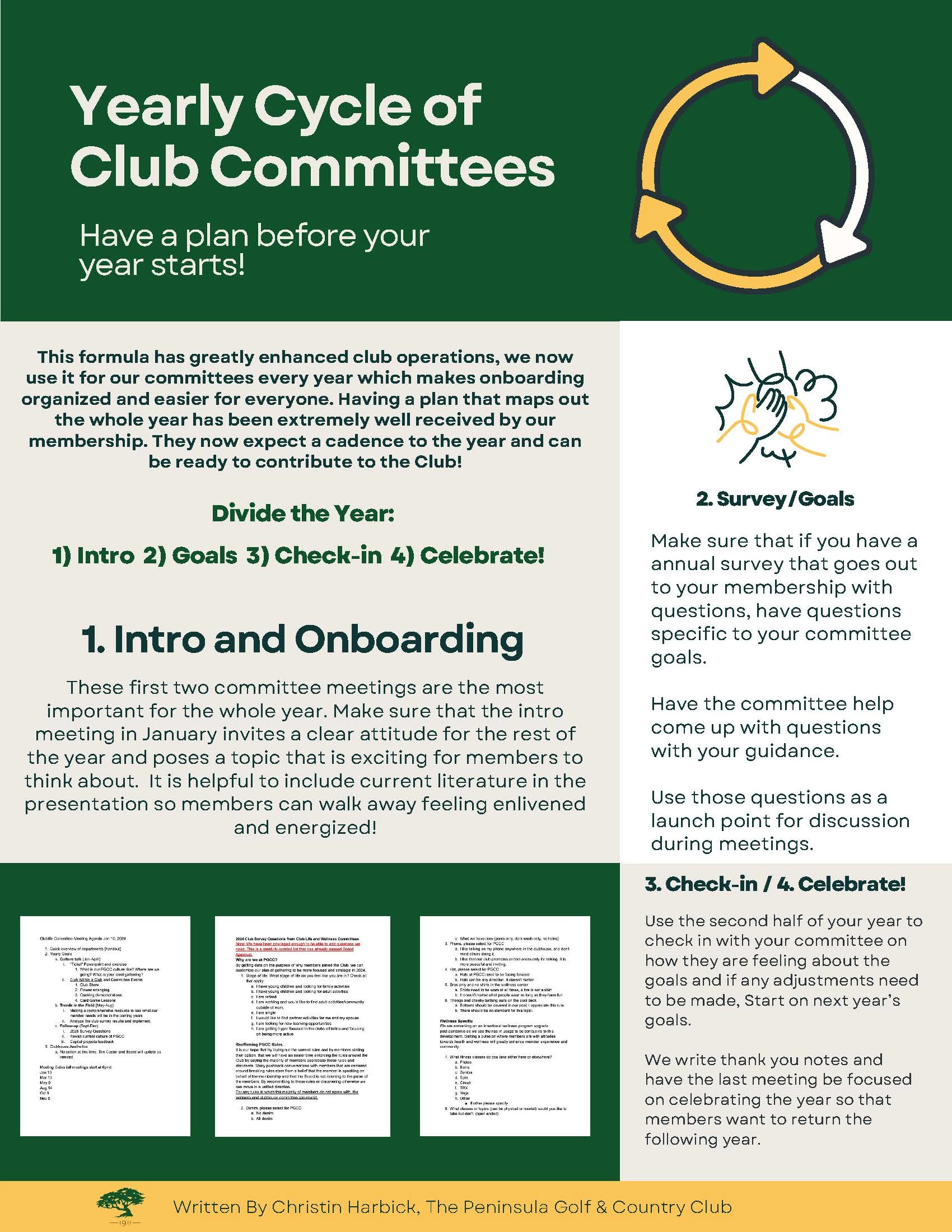We have implemented this idea with our agendas and new committee member packets. Having a plan that maps out the whole year has been extremely well received by our membership. They now expect a cadence to the year and can be ready to contribute to the Club!