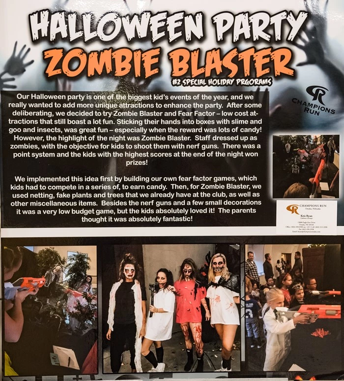 We implemented this idea first by building our own fear factor games, which kids had to compete in a series of, to earn candy. Then, for Zombie Blaster, we used netting, fake plants and trees that we already have at the club, as well as other miscellaneous items. Besides the nerf guns and a few small decorations it was a very low budget game, but the kids absolutely loved it! The parents thought it was absolutely fantastic!