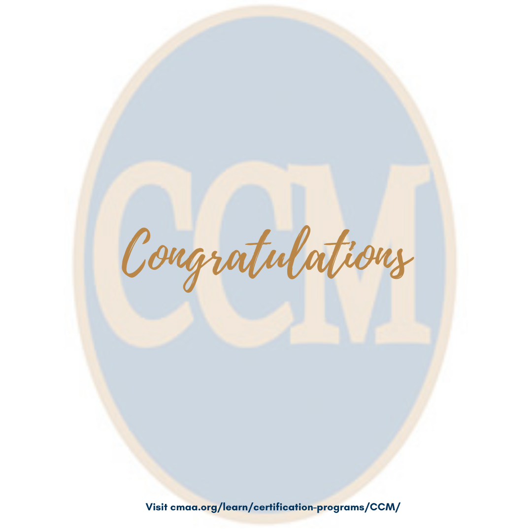 The Club Management Association of America (CMAA) announces the newest club management professionals to attain the designation of Certified Club Manager (CCM).