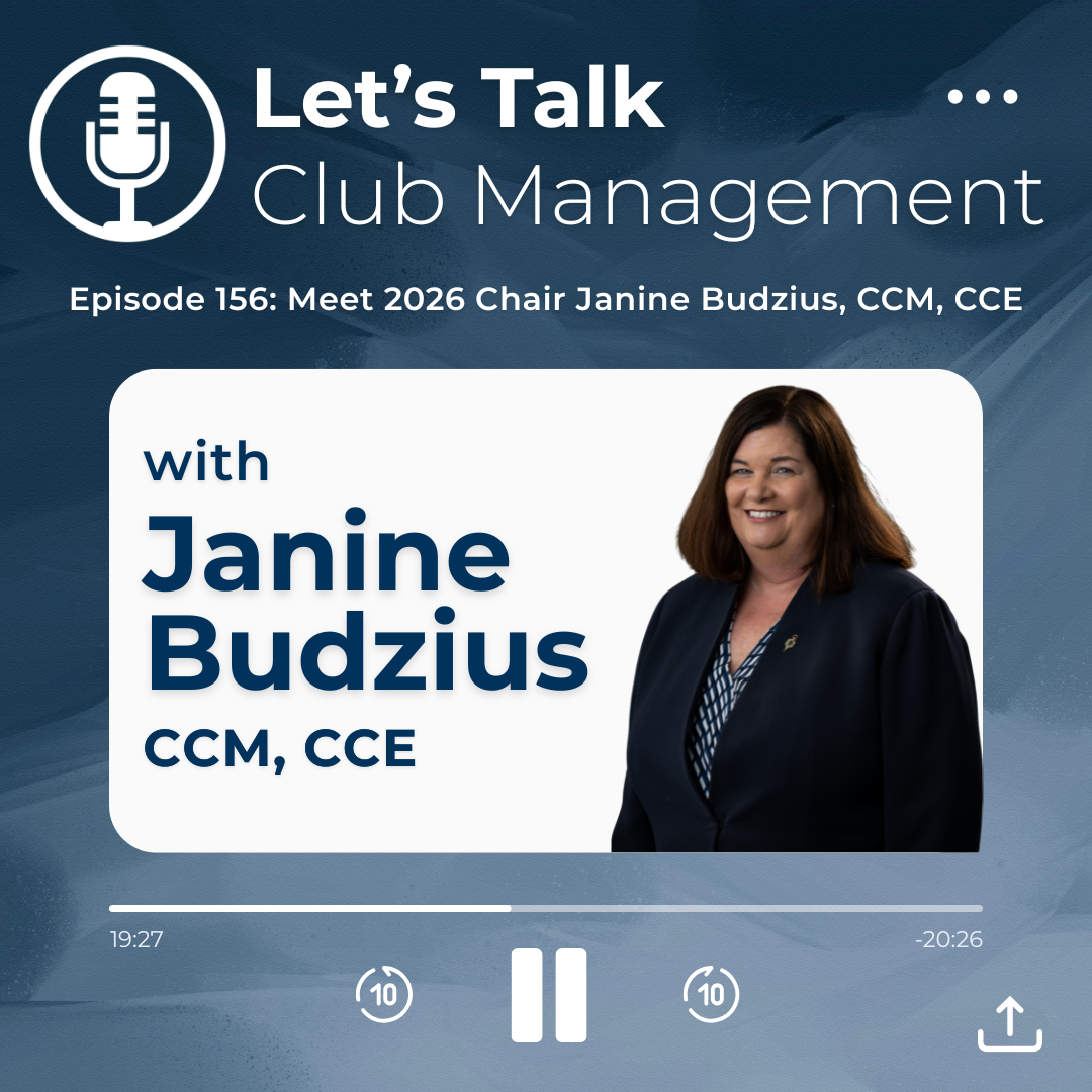 Listen to Let’s Talk Club Management Ep. 156: Meet 2026 Chair Janine Budzius, CCM, CCE