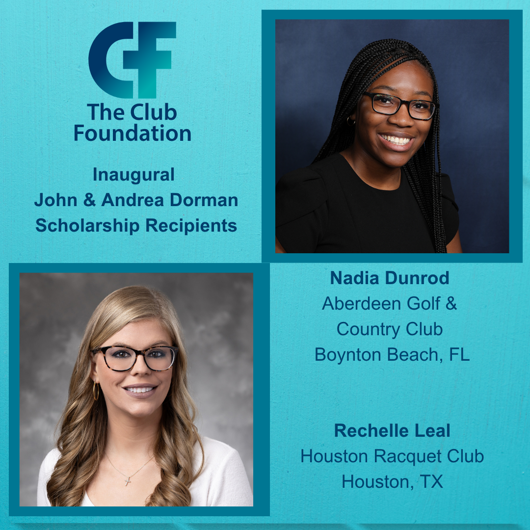 The Club Foundation announces the inaugural recipients of the John & Andrea Dorman Scholarship. Established earlier this year by The Club Foundation through an endowed fund from the Dorman family, this Scholarship honors John and Andrea Dorman and their deep love for and involvement in the club industry. Andrea passed away in March. Her legacy will continue through this Fund and her many other contributions.