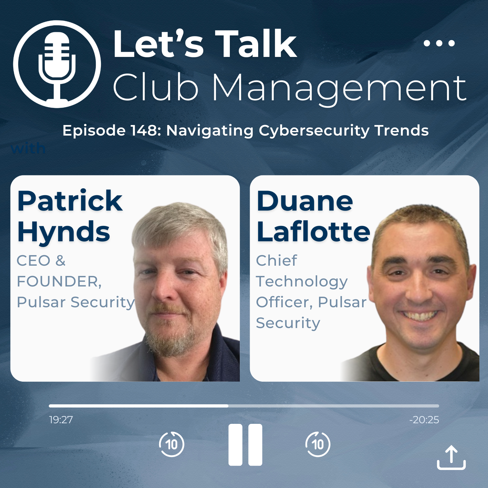 We are thrilled to welcome back to our podcast, our favorite cybersecurity experts at Pulsar Security, a CMAA Education Partner, for answers to our questions about current cybersecurity trends. Pulsar is a company whose mission extends to protect clubs and their members against malicious attacks. The company is a Veteran, privately owned business built on vision and trust, whose leadership has extensive military experience enabling it to think strategically and plan beyond the problems at hand. We are excited to welcome back the CEO and Founder of Pulsar Security, Patrick Hynds and Chief Technology Officer Duane Laflotte.