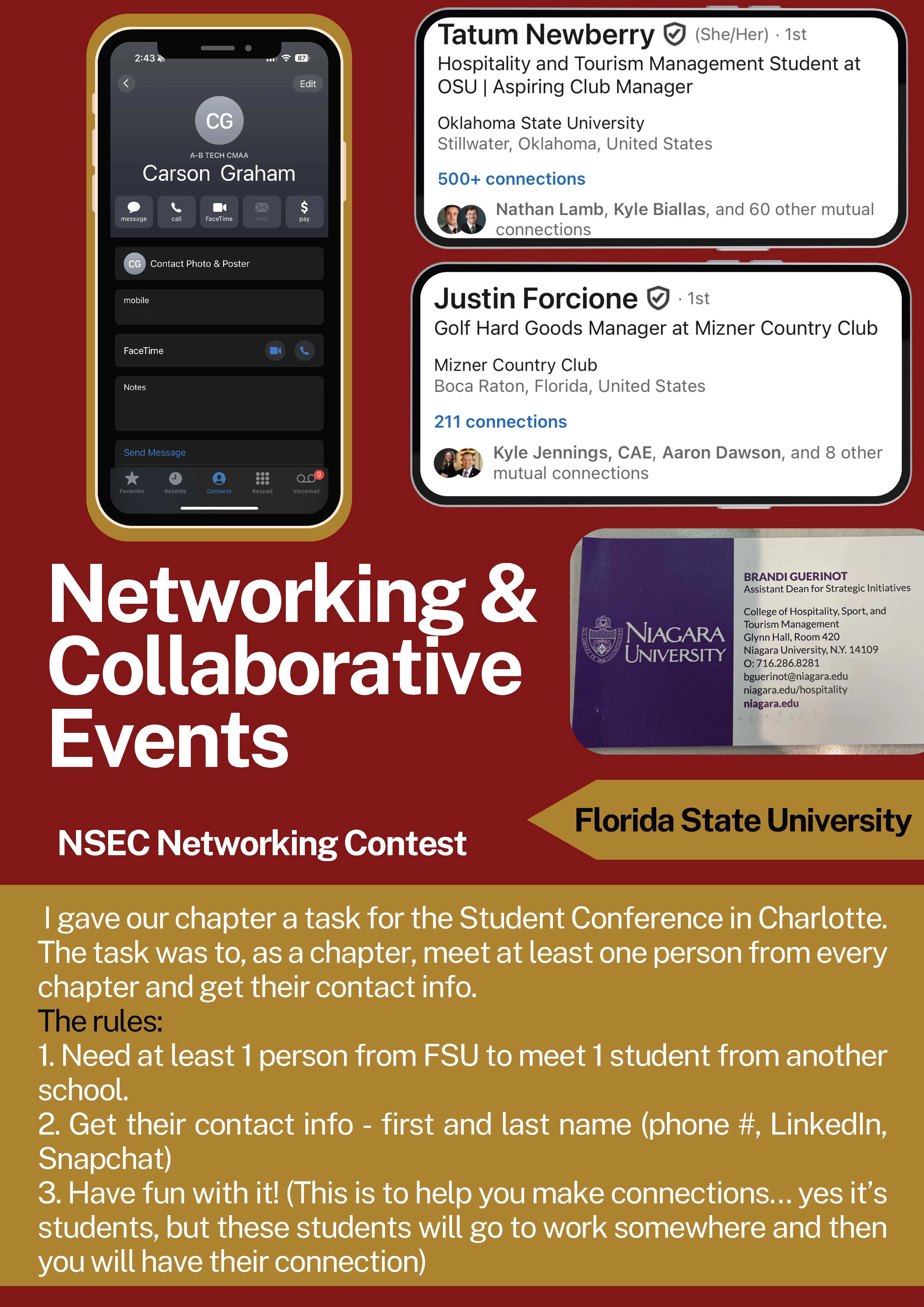 They loved the challenge and turned it into a fun game of networking. FSU successfully networked with every school.